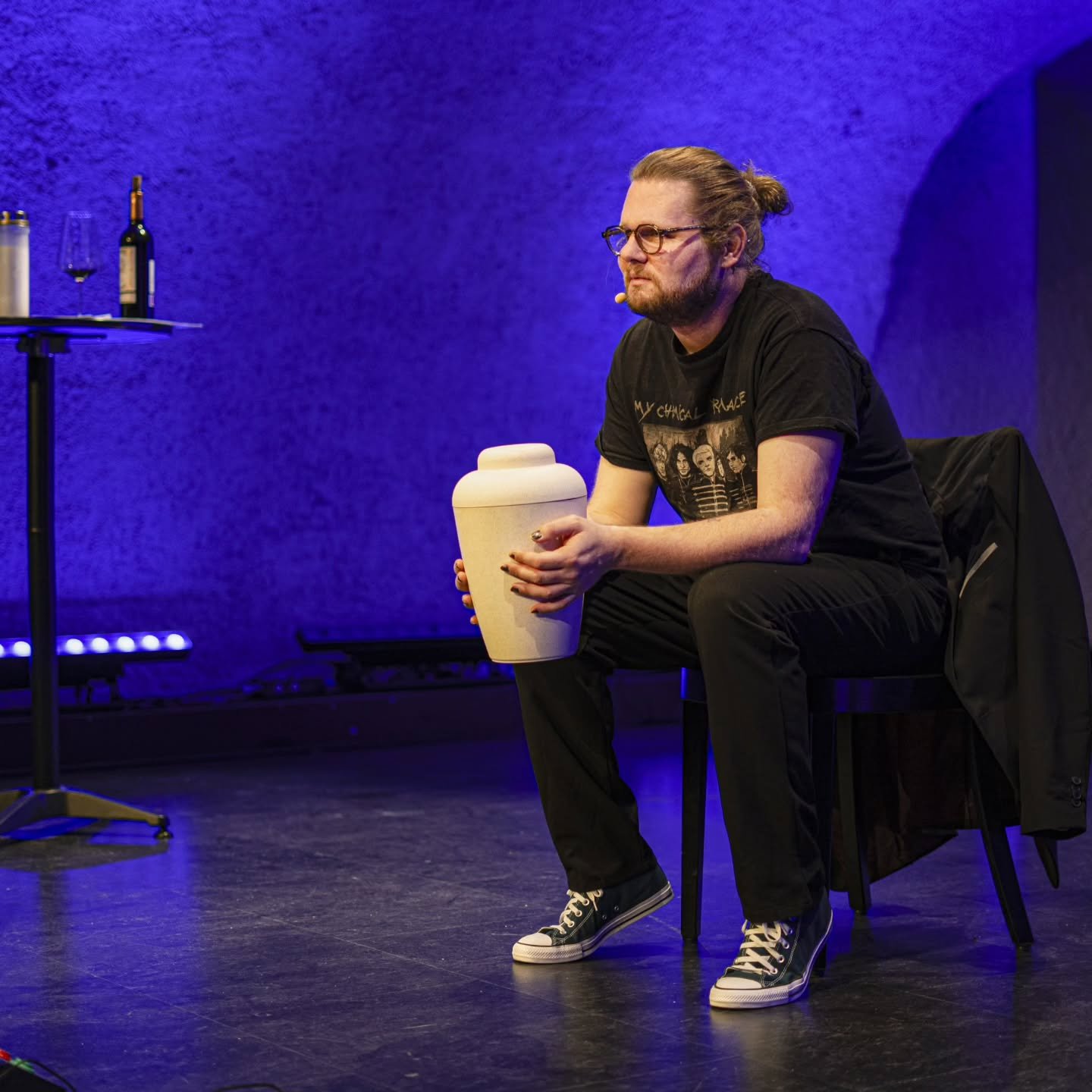 «Im Abgang lebhaft», bewegt sich im Spannungsfeld zwischen Liebesgeschichte und vorgedruckter Beileidskarte. Johannes R. Millius auf der Reise zu seinem innersten Ich – vorbei an den Südhängen Riojas, der Zähringerapotheke in Bern und kistenweise Legosteinen. Ein Spoken-Word-Abend, zwischen Kondolieren und Kollabieren schwingend. Mit Herz, Schalk, Absurdität, Poesie, Irrwitz – und einer Urne.